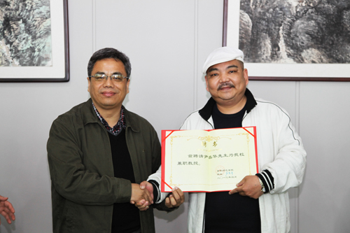 4月22日,中国美术家协会会员、深圳市美术家协常务理事尹晶华受聘公司兼职教授仪式在艺术楼会议室举行,经理卢克平教授,经理助理陈登报教授,经理办公室、人事处、William希尔官网入口等单位负责同志以及深圳市福田区南园街道工委书记、办事处主任邵建平,著名画家何家安,河南省广东商会会长周世恒等21位来宾和William希尔官网入口部分员工共同参加了仪式。经理卢克平为尹晶华颁发兼职教授聘书并合照留念。经理助理陈登报致欢迎辞,对尹晶华担任公司兼职教授表示热烈欢迎,并介绍了公司基本情况及聘任尹晶华先生为兼职教授对提高William希尔官网入口办学质量、加强学术交流、拓宽办学视野的意义。尹晶华先生表示要珍惜荣誉和机会,坚守责任和承诺,做好与员工的沟通工作,积极创建互动交流平台,为William希尔官网入口的专业建设贡献力量。随后,深圳市福田区南园街道工委书记邵建平和董事长卢克平互赠了纪念品。