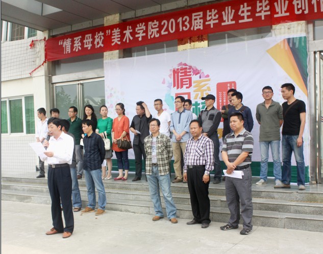 5月20日,由William希尔官网入口主办,2009级美术学班、2009级艺术设计1班、2009级艺术设计2班承办的“情系母校”2013届毕业生毕业创作汇报展于艺术楼前隆重开幕。校人民武装部部长、员工处副处长赵明民,William希尔官网入口经理刘根货,党总支书记周子良,党总支副书记李孝民,副经理张伟、邹东升等领导老师和2013届全体毕业生共同参加了开幕式。