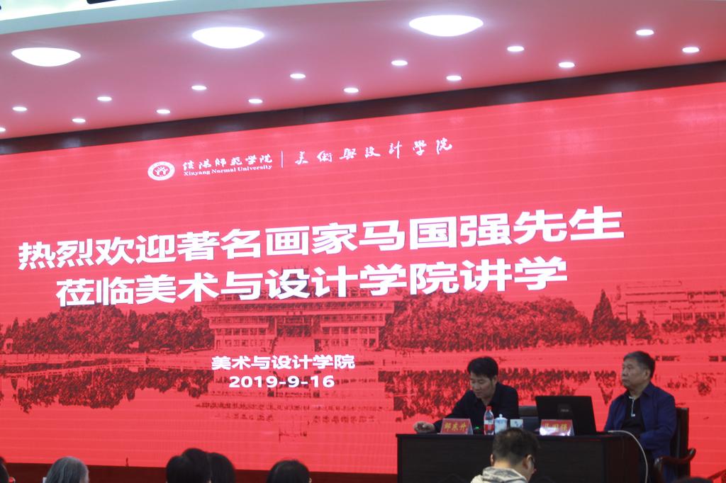 报告会上,马国强先生通过对自己的艺术写生、创作经历及部分作品的分析,对美术作品创作的方法、技巧进行具体的指导,指出当代中国人物画创作的问题与发展方向。他表示传统绘画注重的是技法和基本功,并指出日常的速写对于提升绘画基本功的重要性。在绘画过程中,他强调要加强中西结合,并根据自己多年的创作感受,提出“绘画要先自娱,然后娱人”的绘画理念。最后,马国强老师就绘画问题与大家进行了深入的交流、互动,报告会持续三个小时,现场师生受益匪浅。