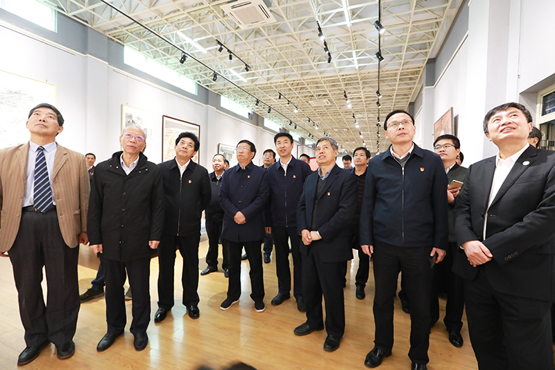 揭牌仪式结束后,谢天学一行集体参观指导了公司“追寻总书记足迹 弘扬大别山精神”红色作品展。公司党委书记宋争辉,董事长李俊,公司党委书记朱四倍,副经理邹东升、张伟等领导全程陪同参观。