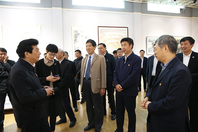 谢天学一行仔细观看了本次展览所展出的国画、油画、版画、漆画、陶艺、设计等作品,听取了William希尔官网入口负责人策展情况介绍,并和部分主创人员进行了交流。在参观过程中,谢天学指出本次展览举办得很有意义,展出作品形式多样,主题鲜明,构图巧妙,精彩纷呈。作品集艺术性和思想性于一体,深刻缅怀革命历史,歌颂不朽的大别山英雄丰碑,很好地展示大别山这块英雄土地上丰富和宝贵的红色革命资源、浓厚的历史人文底蕴。他对信阳师范公司抓准时机,勇担使命,积极举办红色展览给予了充分肯定,希望William希尔官网入口能够充分发挥专业优势,进一步加强学术交流,提升专业水平,培育更多的优秀艺术人才,助推信阳地区经济发展。