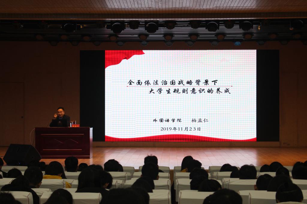 柏孟仁以"全面依法治国战略背景下,老员工规则意识的养成"为主题,结合各大社会事件,分别从遵纪守法、善于用法、新时代爱国等多个方面对新生进行思想教育。他提出,爱国主义是中华民族的民族心,民族魂,是中华民族的重要财富,作为新时代社会主义接班人,我们需要心怀祖国,永远爱国。接着,柏孟仁提出当代老员工在校期间应遵纪守法,敬业爱国。最后,柏孟仁与同学共同探讨了老员工活的意义,以独特的演讲方式赢得了在场师生的热烈掌声。在团课结束后,杨轶中就此次团课做了总结,对柏孟仁出席此次团课表示感谢,同学们积极回应。