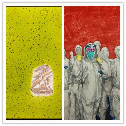 他们挥丹青画笔,凝创作之力,以大美之艺、大爱之心投入到这场防控战“疫”中来,以自己的实际行动践行着初心使命,创作了众多动人心弦的疫情防控为主题的国画、瓷板画、海报、书法、速写等多种形式的作品。