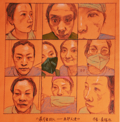 秦瑞红《最可爱的人—医护天使》彩铅素描