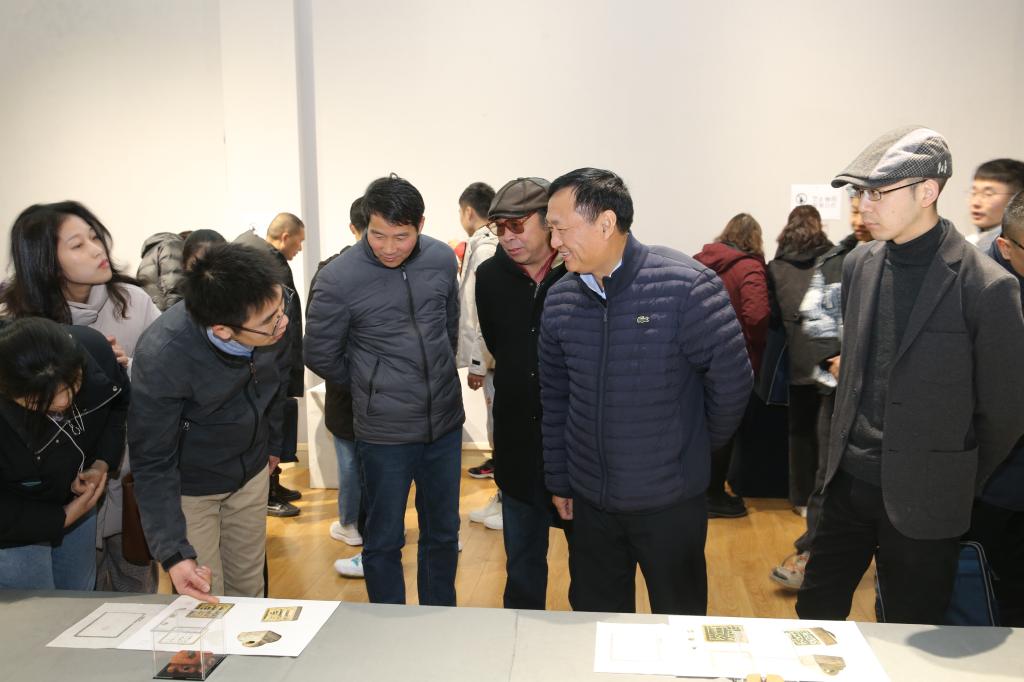 陈登报宣布望山庐藏印展暨栗跃崇鉴藏古印展正式开幕,领导嘉宾在展厅有序观展,栗跃崇为领导嘉宾作了详细解说。