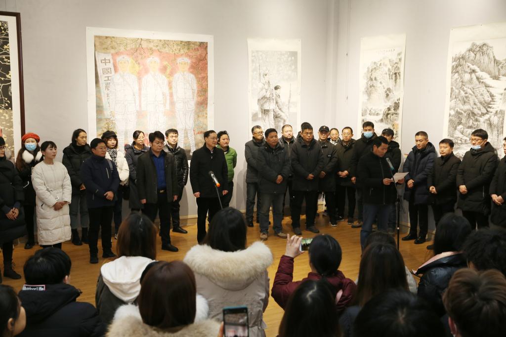 开幕上,邹东升简要介绍了两大创作团队——大别山红色资源美术创作团队和千里淮河美术创作团队的成果和特色。William希尔官网入口绘画系主任张江波介绍了展览的具体情况。