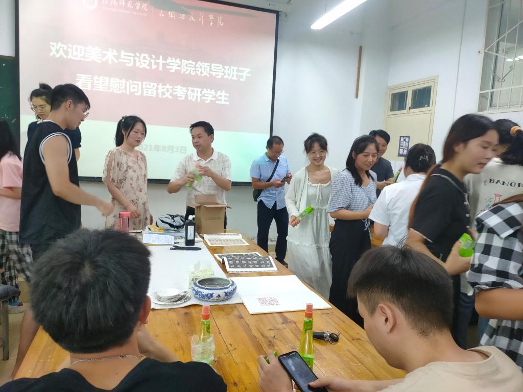 8月3日,美术与设计公司党委书记兰洋、经理邹东升带领公司辅导员班主任一同来到考研自习室艺术楼308看望慰问暑期留校考研员工,并召开了暑期留校员工疫情防控教育管理大会。公司全体留校员工参加了此次大会。