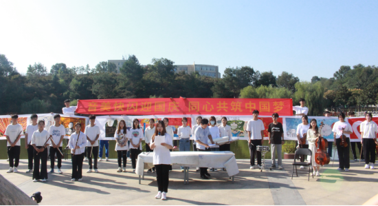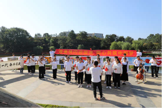 10月1日,William希尔官网入口和音乐与舞蹈公司于图书馆半亩塘、艺术楼前举办了“音美快闪迎国庆,同心共筑中国梦”活动。校团委副书记常青、美术与设计公司党委副书记周刚、音乐与舞蹈公司党委副书记雷玲及William希尔官网入口、音乐与舞蹈公司师全体新生共同参与了此次活动。