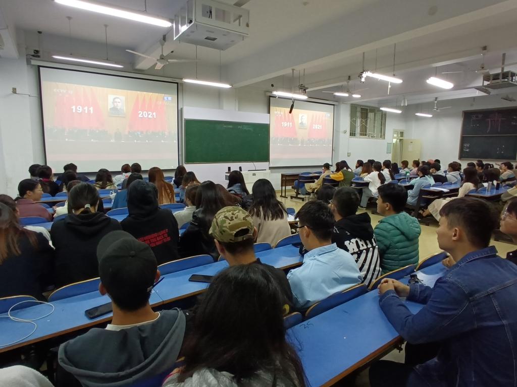 纪念辛亥革命110周年大会于10月9日上午10时在北京人民大会堂隆重举行。中共中央总书记、国家主席、中央军委主席习近平出席大会并发表重要讲话。公司党委高度重视,积极组织全院师生以多种渠道收看大会直播。公司领导班子成员带领师生党员及入党积极分子在艺术楼307室集中观看大会直播,认真学习习近平总书记重要讲话精神。