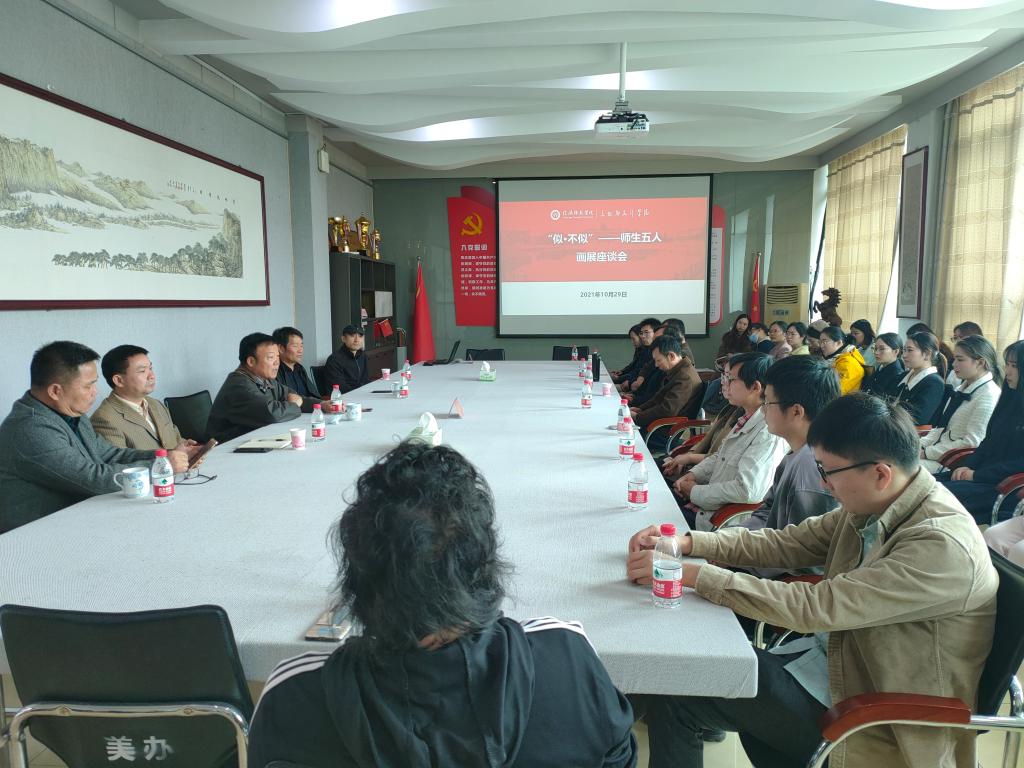 10月29日上午,公司在艺术楼二楼会议室举办了“似·不似”师生五人展座谈会。河南省美术家协会原副主席、人物画艺委会主任、河南大学教授、硕士生导师袁汝波,公司党委书记兰洋,经理邹东升,副经理张伟、张江波以及信阳市书画爱好者和部分师生共同参加了此次座谈会,座谈会由副经理张伟主持。