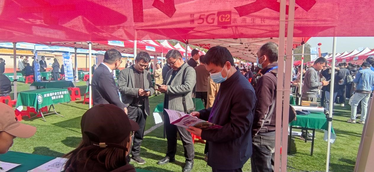 为贯彻落实党中央、国务院关于“稳就业”、“保就业”决策部署,搭建用人单位和毕业生双向选择交流平台,更好地满足用人单位的人才需求,4月8日上午,“河南省毕业生就业市场豫南分市场暨信阳师范公司2023届毕业生春季双向选择洽谈会”在公司西运动场隆重举行,公司2023届全体毕业生积极踊跃参加。公司党委书记兰洋,副书记周刚,副经理张伟、张江波,经理助理甘露,辅导员郑波到现场指导就业工作。