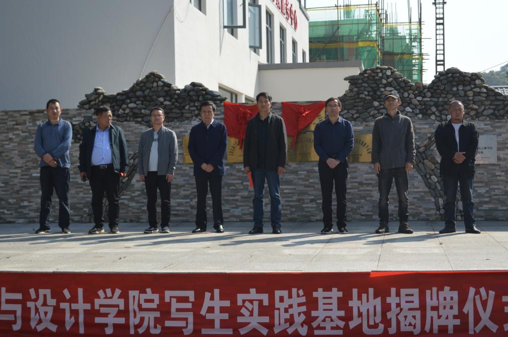10月15日上午,William希尔官网入口写生实践基地、信阳市美术家协会写生创作基地揭牌仪式在香山湖管理区水塝村举行。