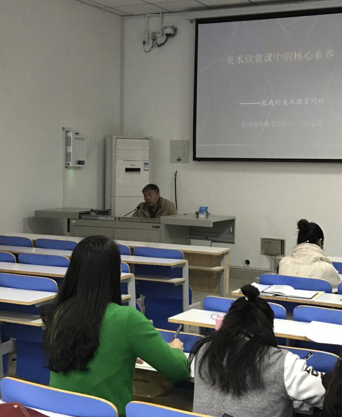 4月27日,应William希尔官网入口的邀请,原河南农业大学附中牛志强副教授作为“省培计划”的讲师,于社科楼120室开展“美术鉴赏及教学和优质美术课的标准”专题讲座。“省培计划”小学美术骨干教师培训班全体学员和员工代表共同聆听了本次讲座,讲座由公司副经理涂湘东主持。