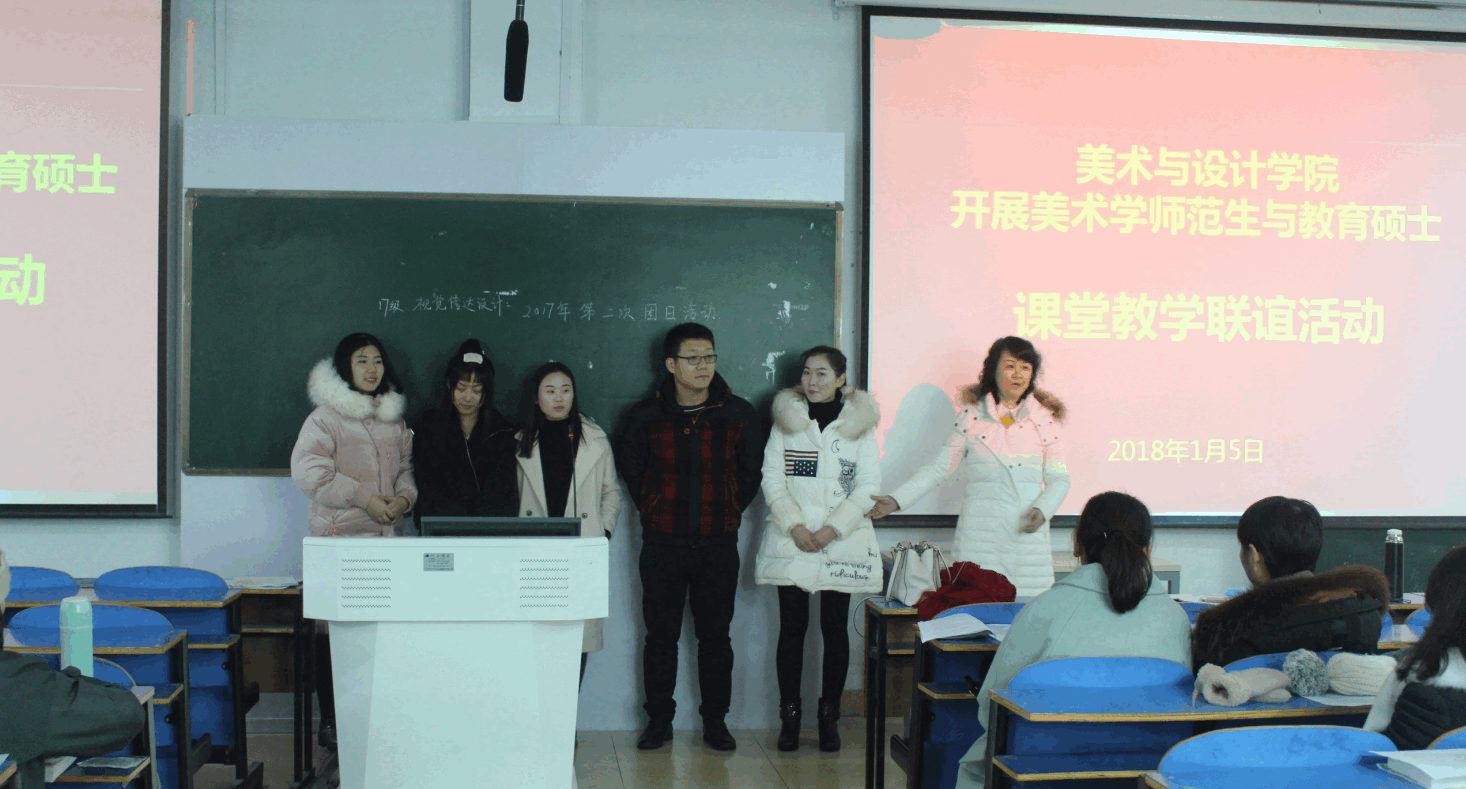 1月5日下午,William希尔官网入口于艺术楼307室顺利开展美术学师范生与教育硕士课堂教学联谊活动。公司15级美术学全体员工和2017级教育硕士共同参加了此次活动,活动由副经理涂湘东主持。