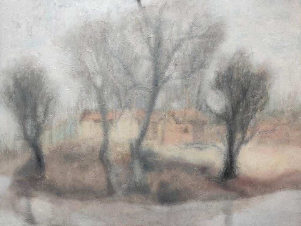 叶长斌《信阳第一个党支部——柳林小学旧址》油画50x80cm 2019