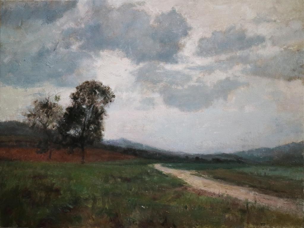 张江波《清水河之路》油画60#80cm2015年