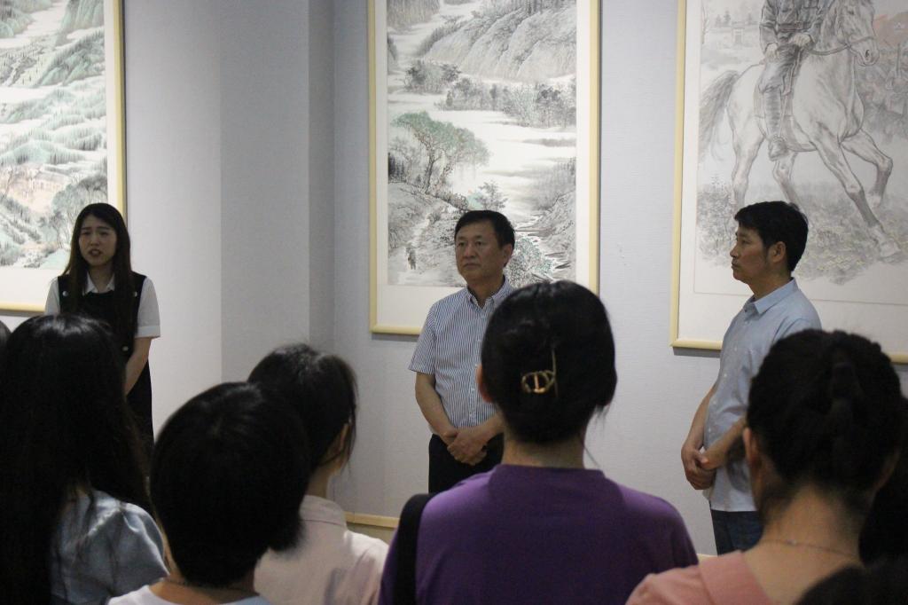 思政课前,陈登报和William希尔官网入口部分师生在艺术楼展厅一起听取了该院青年教师明政现场讲述的红色故事:“不屈忠魂留青山”——毛国兴的革命故事。
